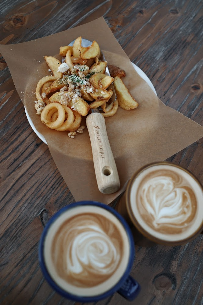 注文したのは「ホットのカフェラテ」を2つと、シェアして食べるための「FARMER’Sポテトフライ」です。