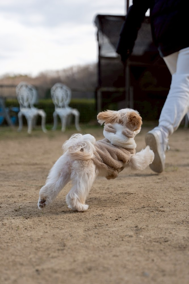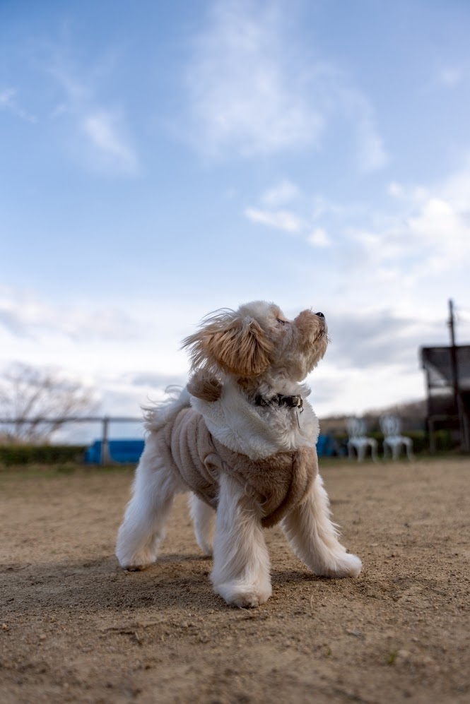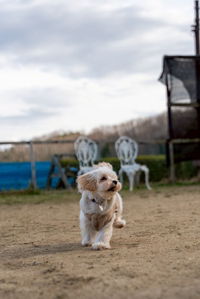 ドッグランのゲートを開ける瞬間、僕たち夫婦も心臓がバクバクでした。 ブランはもともと人が大好きですが、他のわんちゃんに対しては少し控えめな性格。いわゆる「内弁慶」なタイプです(笑)。