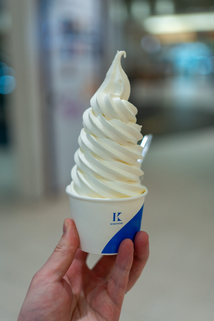 ラーメンで塩分を補給した後は、甘いものが欲しくなるのが人間の性(さが)というもの。 次に向かったのは、「きのとや」のソフトクリームです。