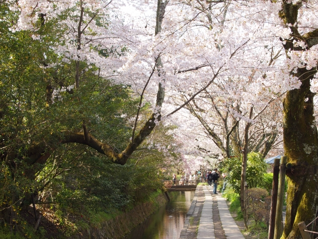 私としても一推しのスポット。銀閣寺付近から続く約2kmの小道沿いに桜が咲き誇ります。京都らしい風情ある街並みと桜の組み合わせは、和の心を感じさせます。