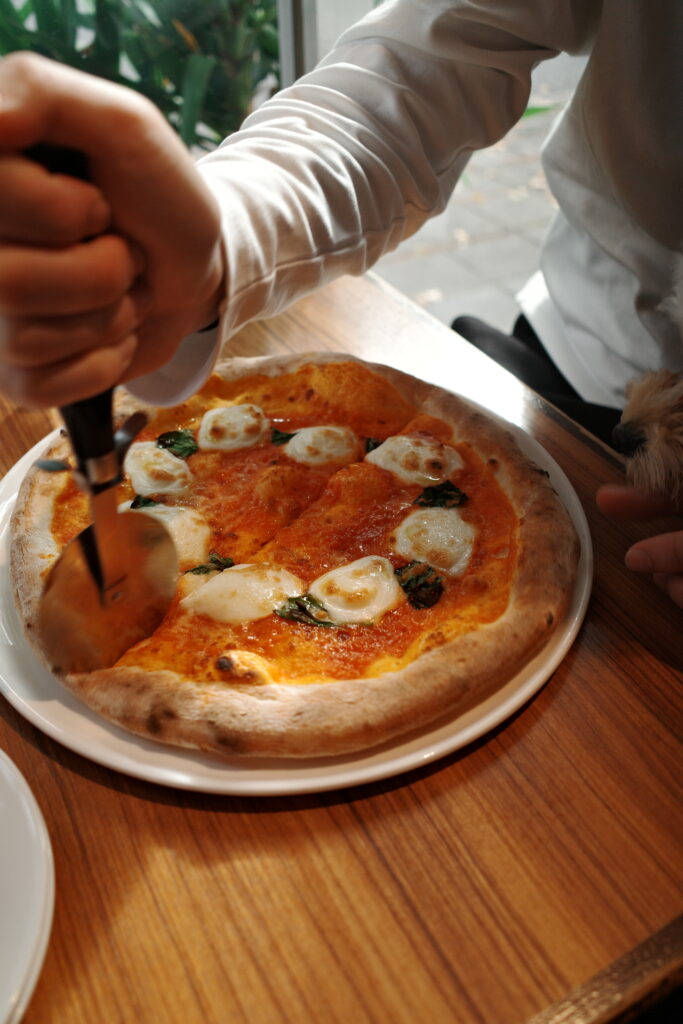 料理は定番のピザから華やかなスイーツまで幅広く揃っていて、家族や友人との食事にもぴったり。ペット連れでも気兼ねなく利用できる雰囲気があり、「愛犬と一緒にカフェで過ごす」という特別な体験を叶えてくれます。