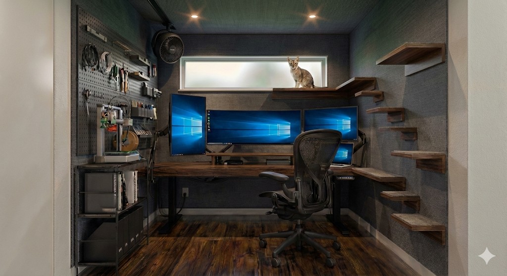 まず最初にこだわりたかったのが、僕が仕事部屋として使う予定の「書斎」です。 猫であるクリフのために、絶対に外せない設備がありました。それが、上下運動ができる専用の空間作りです。